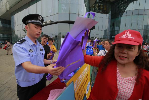 | 6月13日上午,大兴公安分局在鸿坤广场举行启动仪式,正式拉开夏季安全防范宣传季活动序幕,民警现场向群众发放防范宣传材料和简易物技防产品。