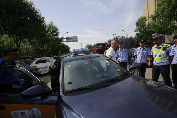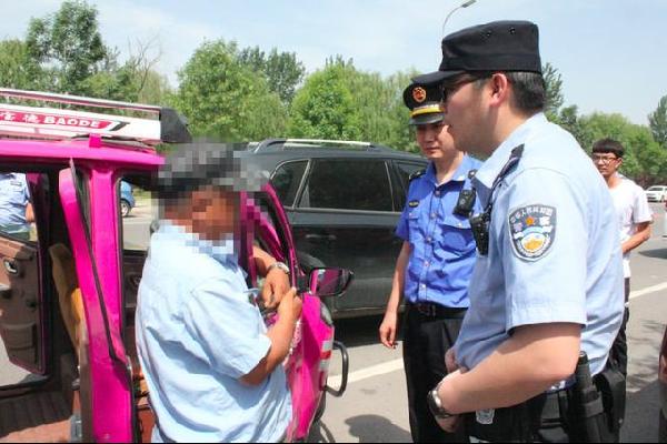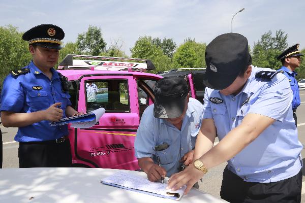 这边民警刚开完罚单,那边一辆来自固安的出租车被城管执法人员拦住。" 之前你已经被警告过一次,怎么还来这边拉活?"
